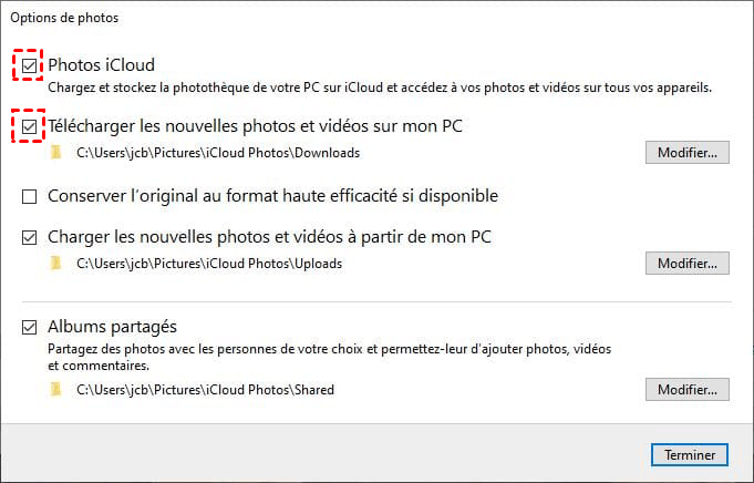 3. Télécharger les Photos iCloud sur PC via iCloud pour Windows
