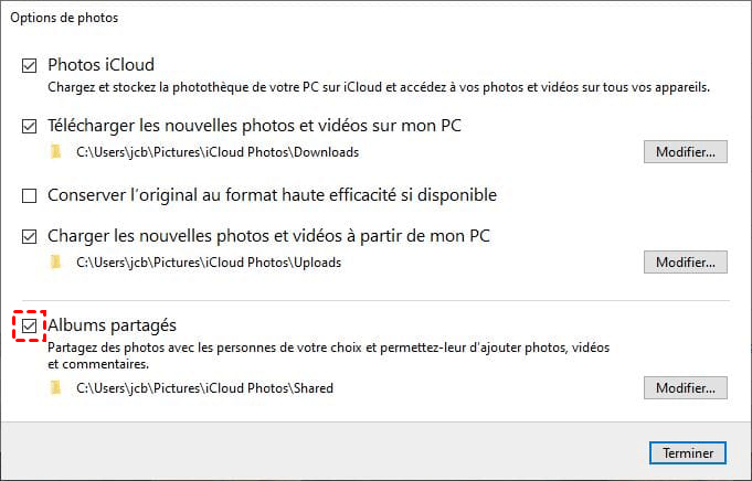 Situation 2 : Comment télécharger les Photos iCloud sur PC (uniquement pour les albums partagés)