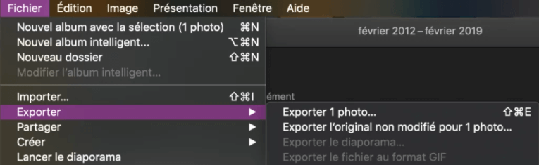 Étape 2. Après avoir sélectionné les photos, allez dans Fichier > Exporter > Exporter [nombre] photos.