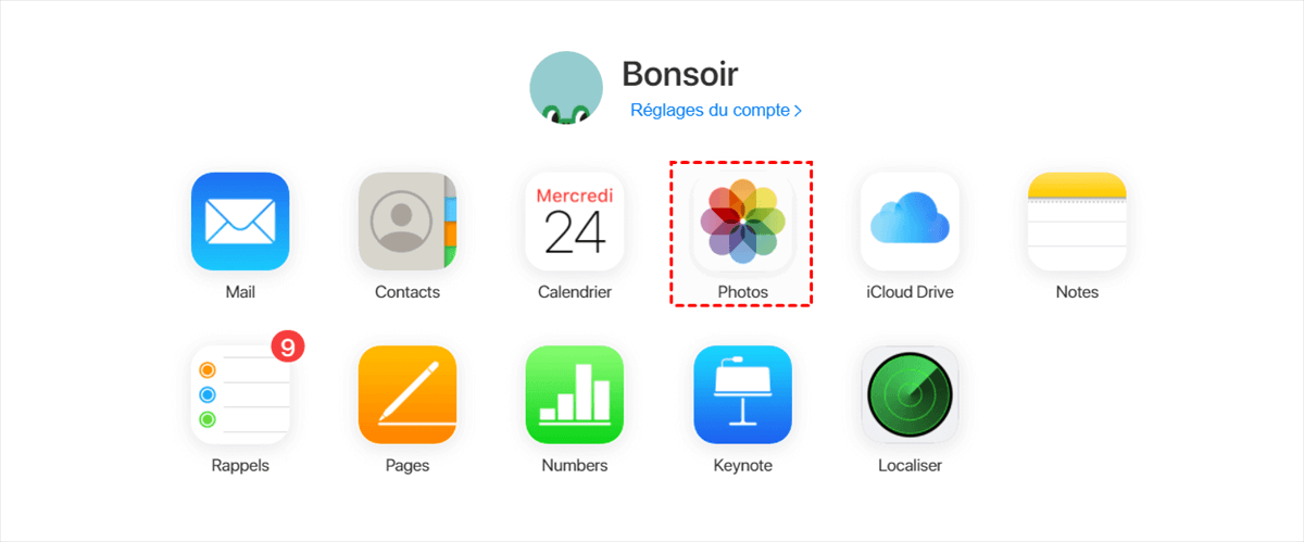 Sur iCloud.com, vous pouvez accéder à toutes les photos iCloud et les visualiser. Vous pouvez également télécharger des photos iCloud sur PC, transférer des photos sur iCloud depuis votre PC ou partager des photos iCloud avec la famille.