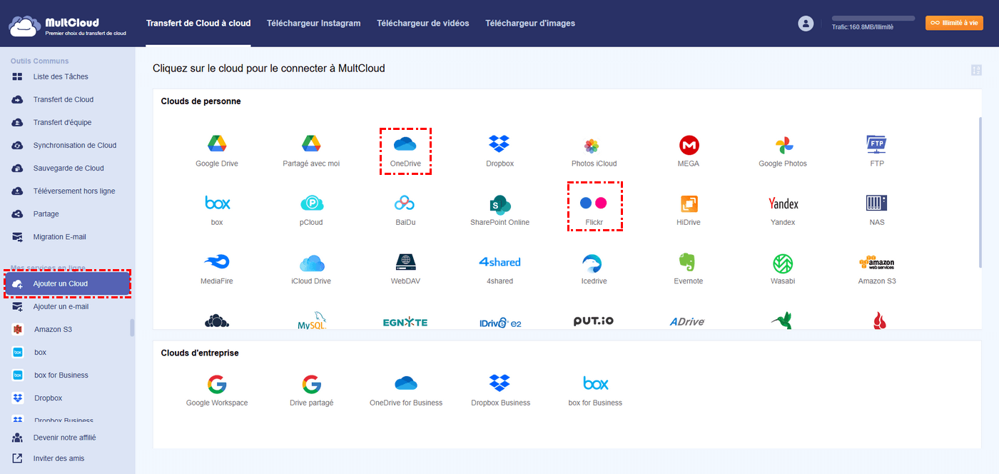 Et si vous transfériez vos photos et vidéos de OneDrive vers Flickr en toute simplicité ? MultCloud, un gestionnaire de fichiers cloud gratuit en ligne, permet aux utilisateurs de gérer et de transférer leurs données de manière efficace et fiable, sans risque de perte de données.