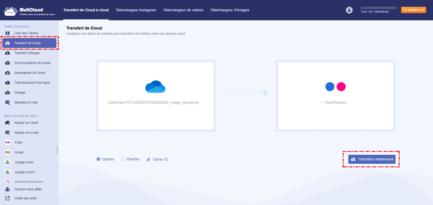 Méthode efficace : transférer des photos OneDrive vers Flickr via Transfert de Cloud
