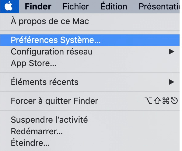 1. Accédez au menu Apple, puis sélectionnez Préférences Système.