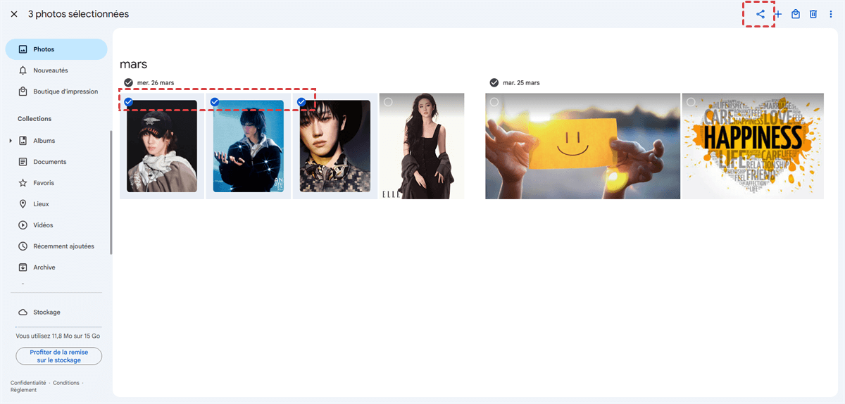 Méthode 4 : Transférer des photos Google vers un autre compte via « Partage »