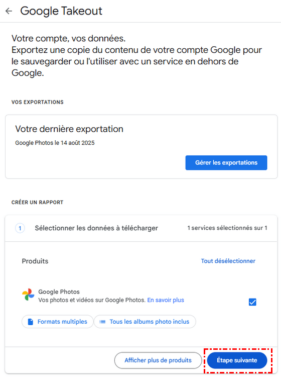 4. Sélectionnez uniquement Google Photos à exporter, cliquez sur « Étape suivante ».