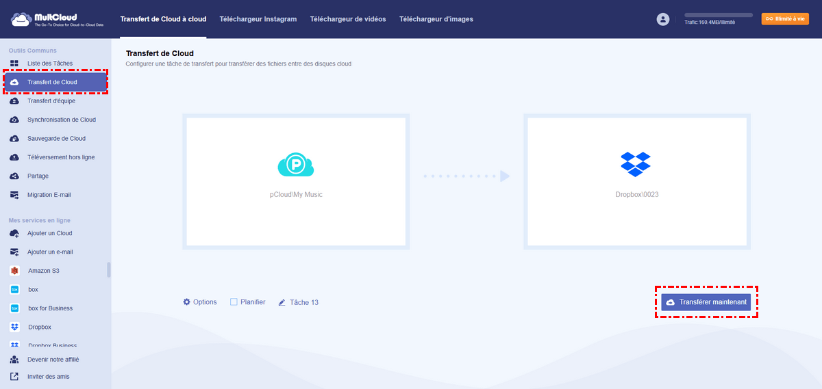 ► Solution 1 : Transférer pCloud vers Dropbox automatiquement [Recommandé]