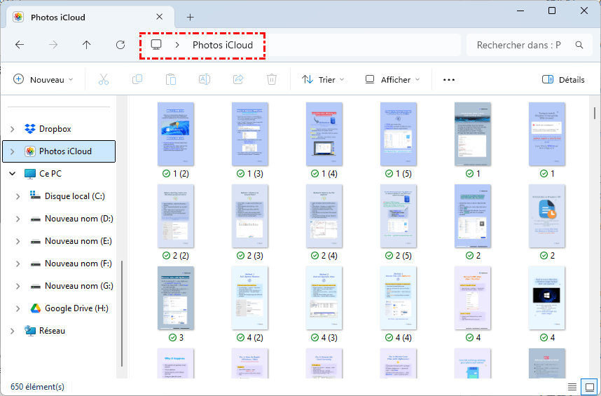 Étape 4. Ouvrez le dossier du navigateur et copiez les photos et vidéos iCloud téléchargées vers le dossier de la clé USB.