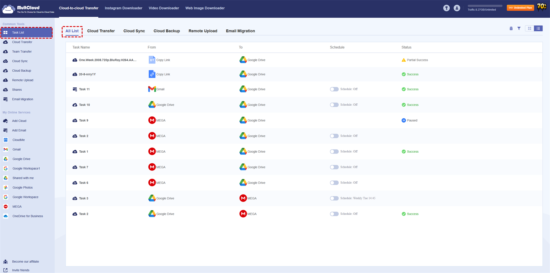 Note: Don't use MultCloud to download or upload unauthorized, infringing copied materials. This function currently does not support copying multiple links to upload files. You can only upload one linked file at a time. If you copy multiple links and then start uploading, the system will select the last linked file to upload.
