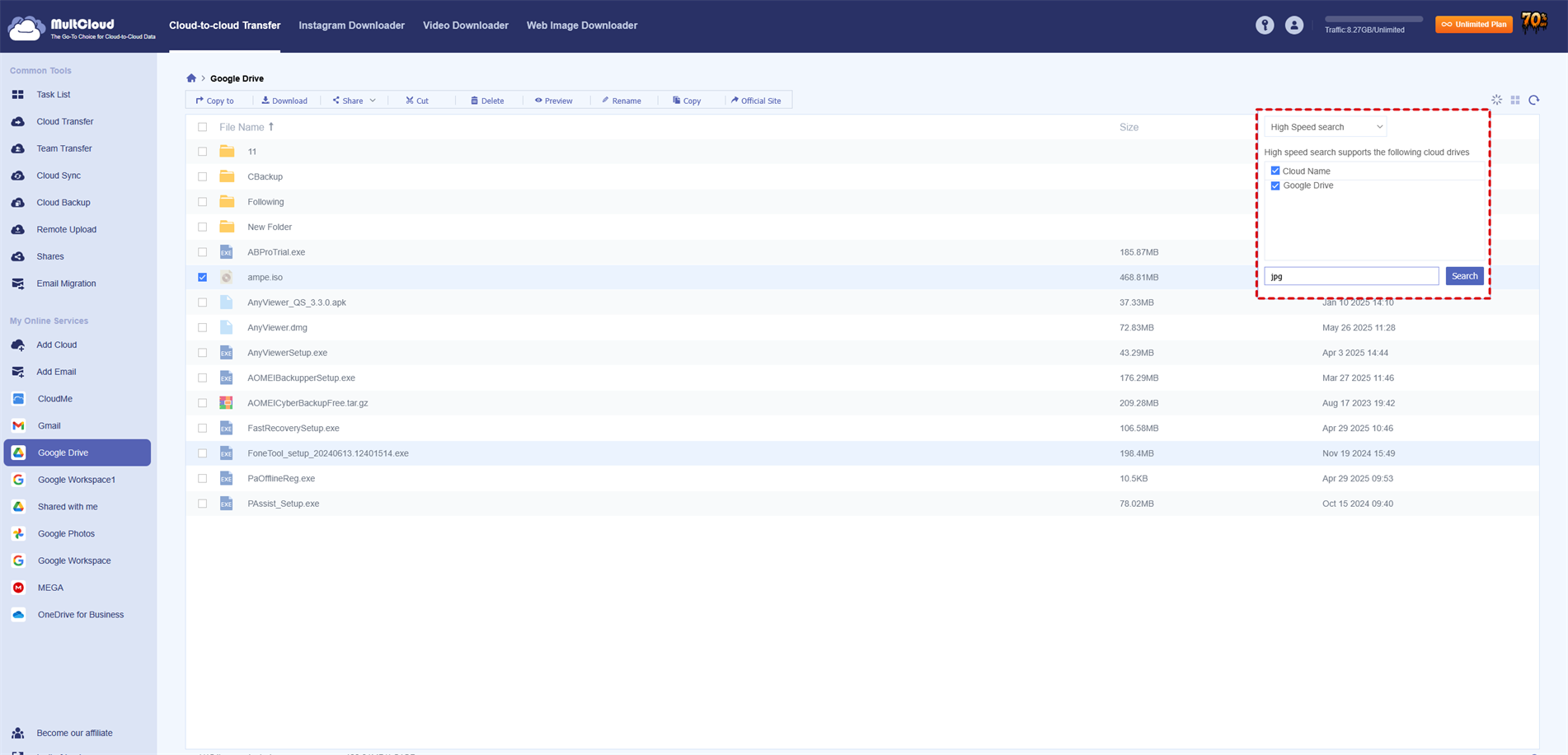 With MultCloud's file search feature, you can directly locate the files you need across different cloud services without spending hours logging into each cloud platform's website to search individually.