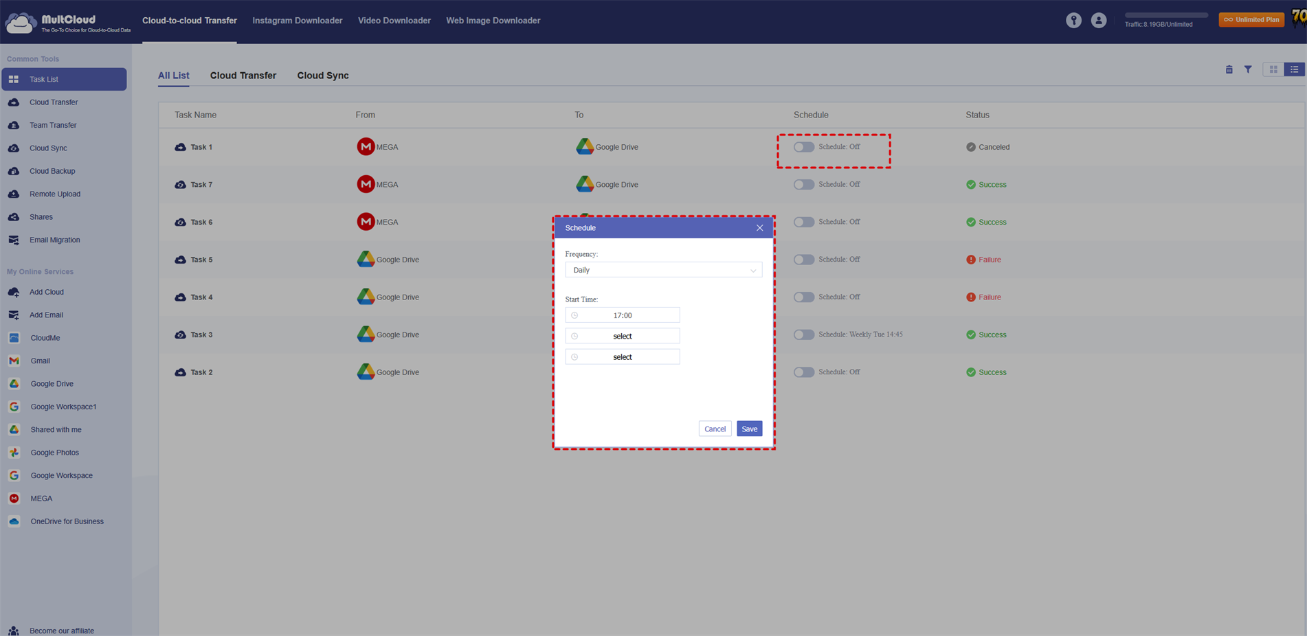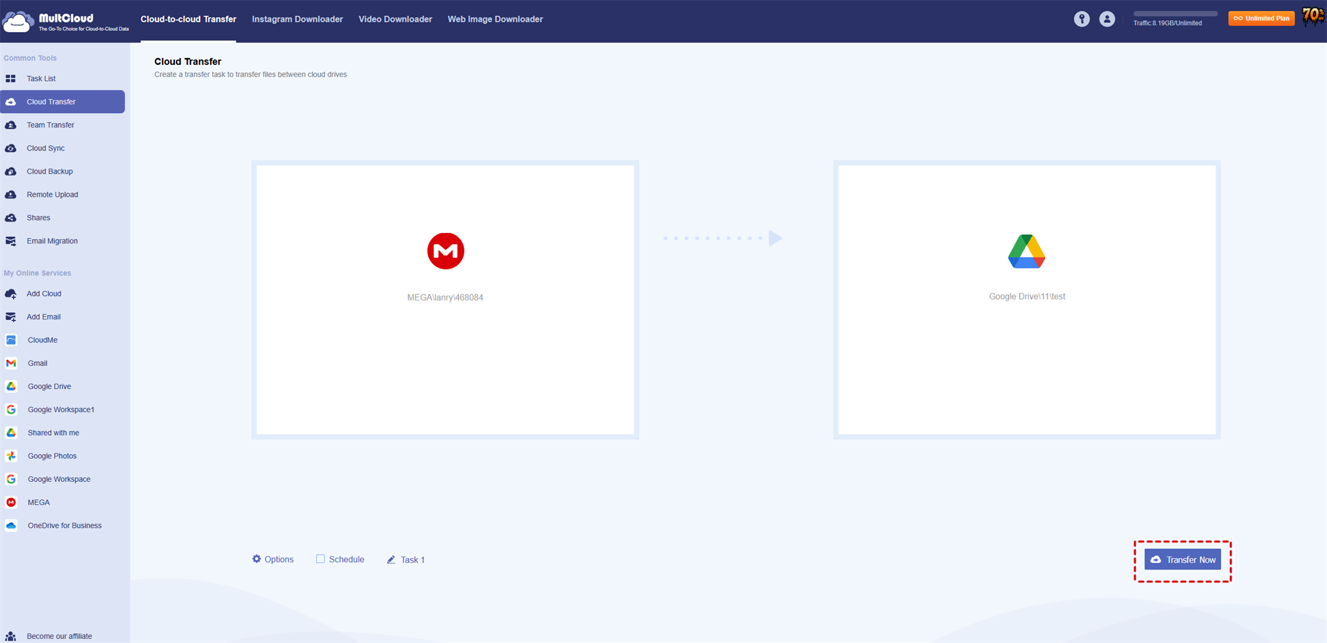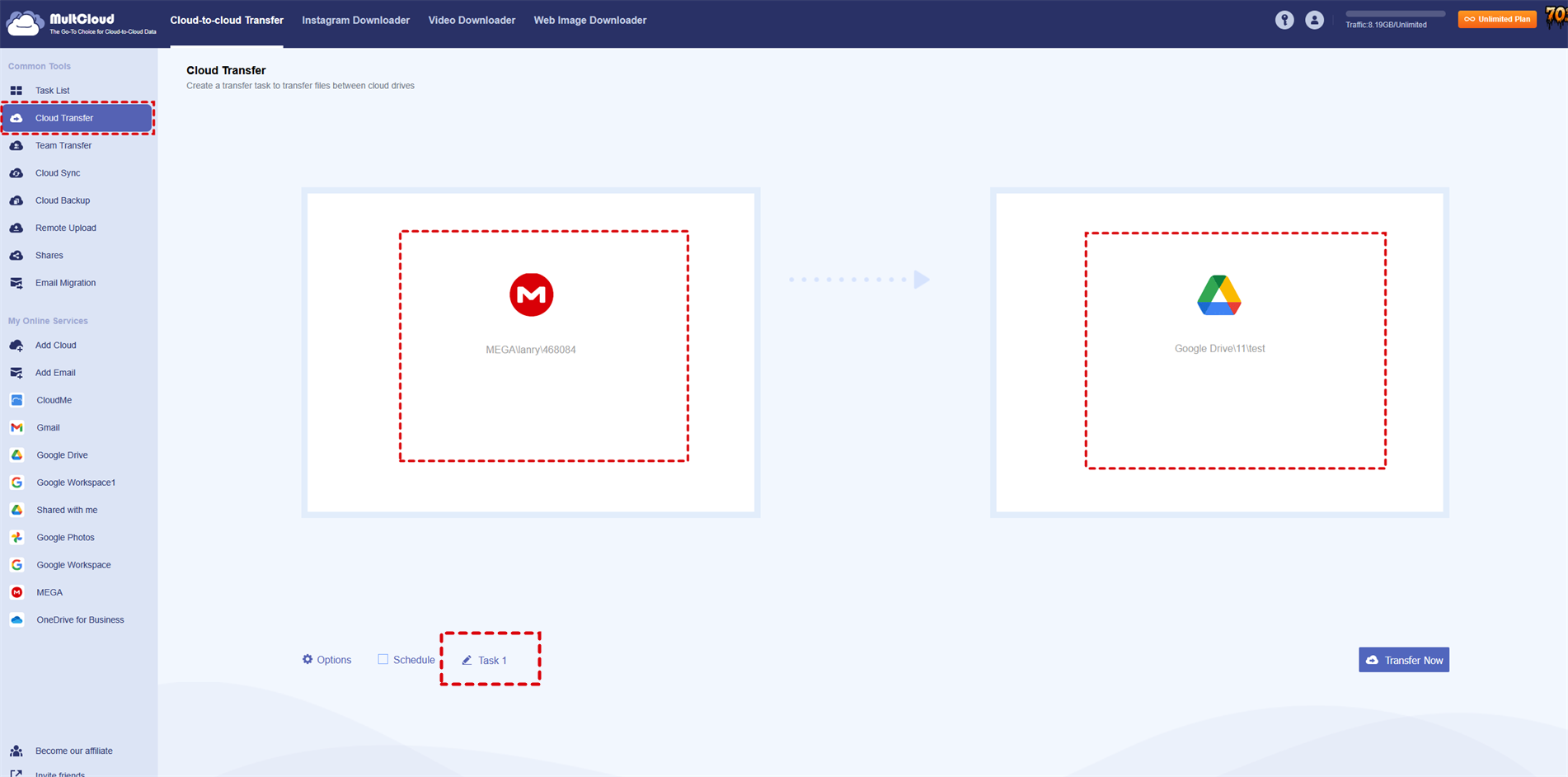 Generally, when you need to upload data from one cloud to another cloud, you need to download files from this cloud to your local disk first, and then upload from the local disk to another cloud disk. It is a waste of time. With MultCloud, you can easily transfer data from one cloud service to another without downloading to local disk first then re-uploading. The features of MultCloud will help you save lots of time.