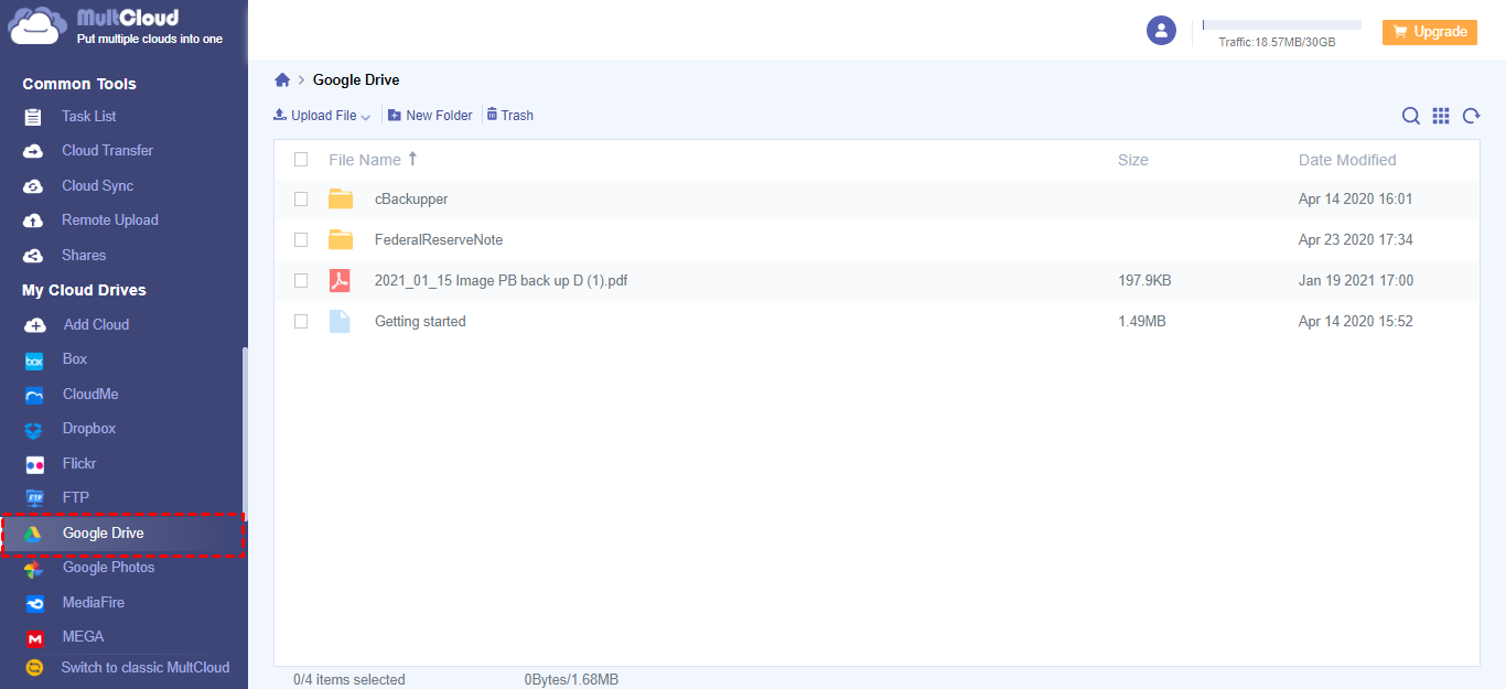 This function helps you upload files to your cloud storage services that have been added in MultCloud. Thus you don't need to log in your cloud service, just open MultCloud and directly upload files to your cloud drive. If you have several cloud accounts, this method will help you save lots of time.
