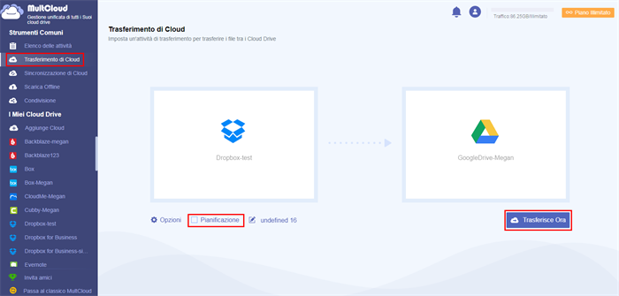 Fai clic su "Trasferisce Ora" e tutti i tuoi file in Dropbox verranno copiati su Google Drive. Questo è uno dei modi per eseguire il backup o la sincronizzazione dei cloud in MultCloud.