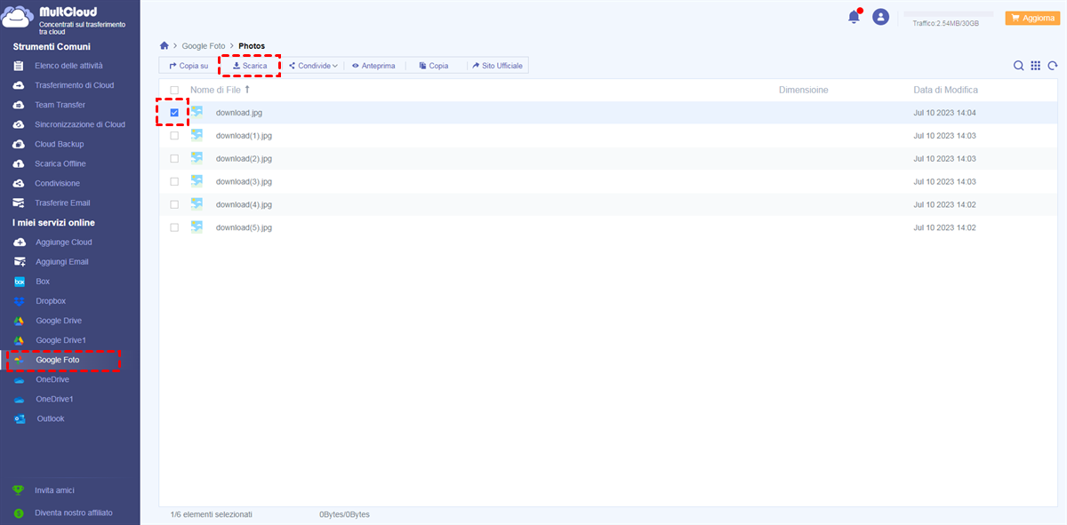 Nel frattempo, MultCloud consente all'utente di caricare, scaricare, trasferire e sincronizzare file da un cloud a un altro o da dispositivi locali. Se hai molte foto da scaricare da Google Photos o da qualsiasi altro cloud sul computer, puoi usare direttamente questo strumento tecnico per aiutarti. Ora, diamo un'occhiata a quei passaggi dettagliati.