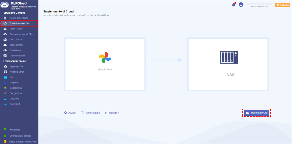 Se desideri semplicemente conservare foto e video sul tuo computer, puoi anche trasferire Google Foto su NAS, che è montato sul tuo computer se ne possiedi già uno, e quindi puoi eliminare foto da Google Foto. Se vuoi farlo, il potente gestore di archiviazione multi-cloud basato sul web MultCloud ti sarà di grande aiuto.
