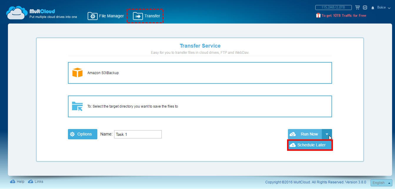 MultCloudはクラウドマネージャーとして、あるクラウドから別のクラウドへ、または一度のログインだけで同じプロバイダーからの他のアカウントへファイルを転送することをサポートします。この場合、あるS3バケットから別のS3バケットにファイルをコピーするためのケーキです。後のやることは、使用中のAmazon S3アカウントをすべてSync MultCloud (S3キー)に追加するだけです。コンテキストメニューからドラッグ/コピーオプションを使用して、またはtransferサービスを使用して、一つS3バケットから別のバケットへファイルをコピーすることができます。また、スケジュール設定で、電源を切った後でもS3バケットから別のS3バケットにファイルを転送することもできます。