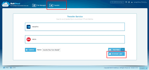 2.「Transfer」サービスでMediaFireからMegaにファイルを転送することができますし、「Schedule」サービスでタスクの自動実行を設定することができます。