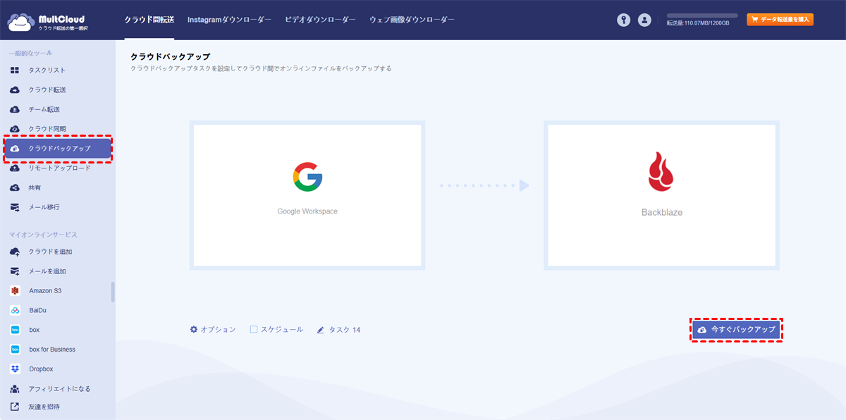 - クラウドバックアップ:オフライン機能を備えたクラウド間のバックアップが可能です。便利なバックアップバージョン管理でデータを安全に保管できます。