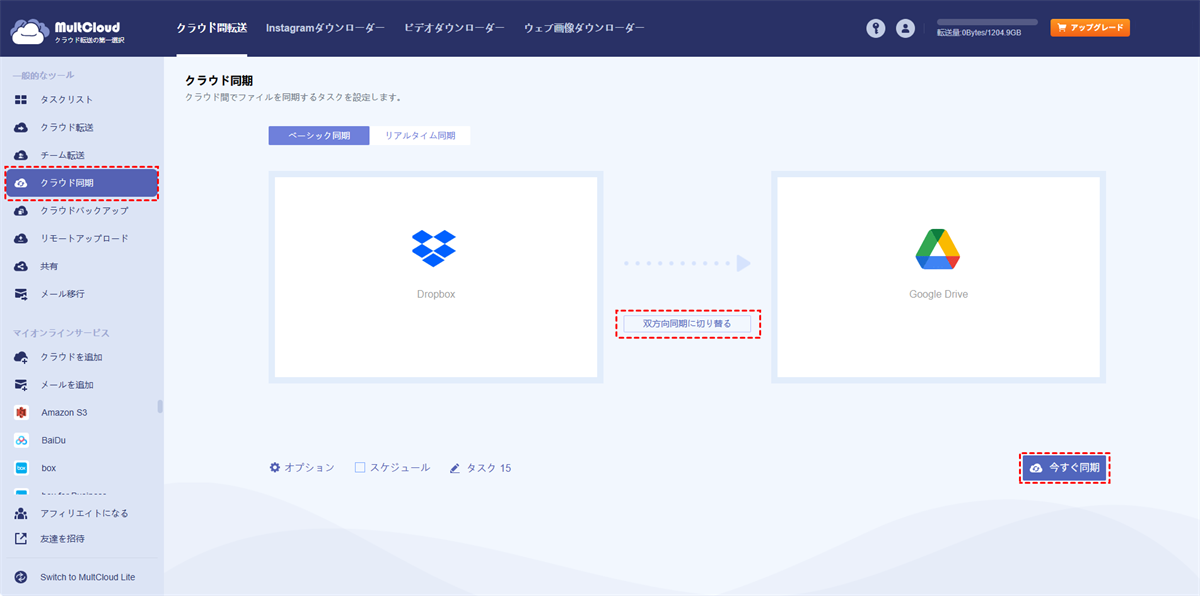 Dropboxとローカルデバイス間の双方向同期には、公式Dropboxアプリが役立ちます。そのプロセスはDropboxの一方向同期と似ています。クラウド間の双方向同期については、専門的なサードパーティソフトウェアの助けが必要です。ここでは、無料のウェブベースのマルチクラウドストレージ管理ツールであるMultCloudを使用して、同期タスクの実行方法を説明します。