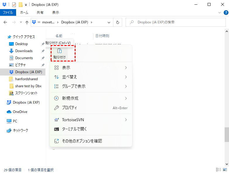 ステップ 3. 左ペインのDropboxをクリックして、コンピュータ上のDropboxフォルダを開きます。同期したいファイル/フォルダをコピー&ペーストまたはドラッグ&ドロップでDropboxフォルダに移動します。クライアントが自動的にそれらをdropbox.comに同期します。