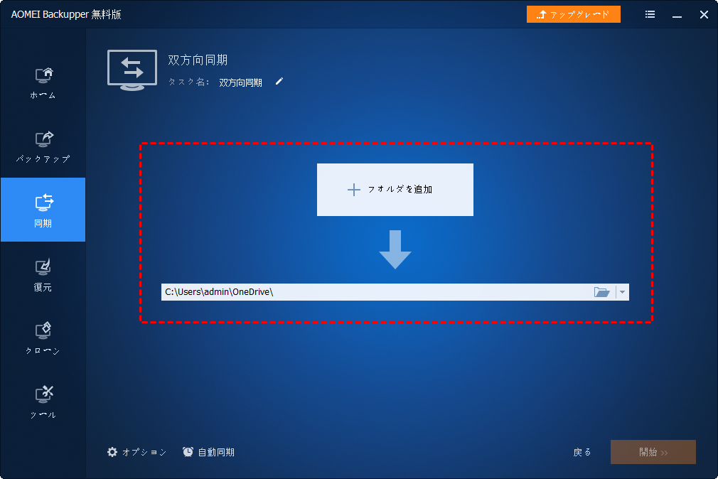 無料版では、「基本同期」のみ利用可能です。後述のバージョン、例えばAOMEI Backupper Professionalにアップグレードすると、3つの高度な同期モードを利用できます: