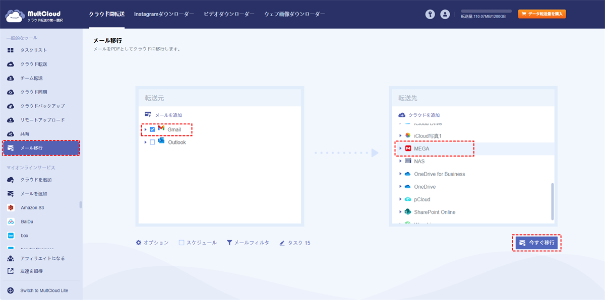 移行後は、メール本文、添付ファイル、その他必要な情報を含むすべての情報が保持されます。以下は、MultCloudを使ってGmailをMEGAに移行する簡単な手順です。