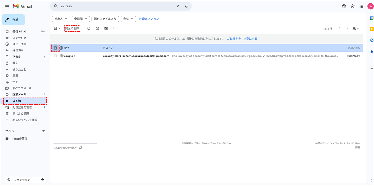 方法2:Gmailの「ゴミ箱」と「スパム」フォルダを空にする