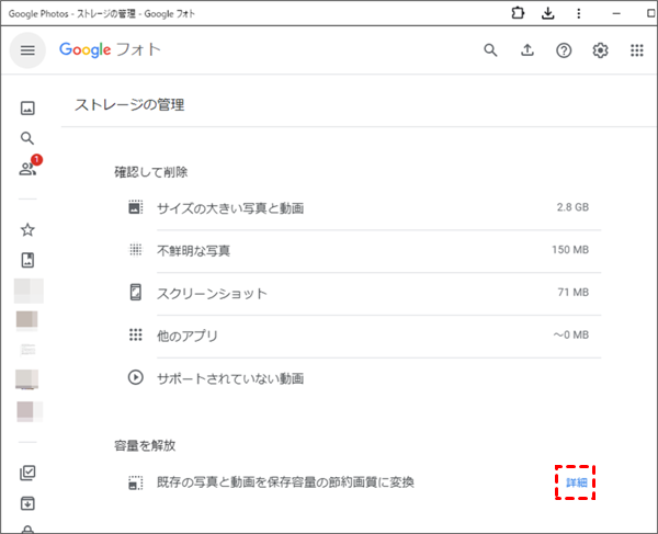 ステップ 3:その進捗バーをクリックすると、GoogleドライブとGoogleフォトの使用済み容量を確認できます。