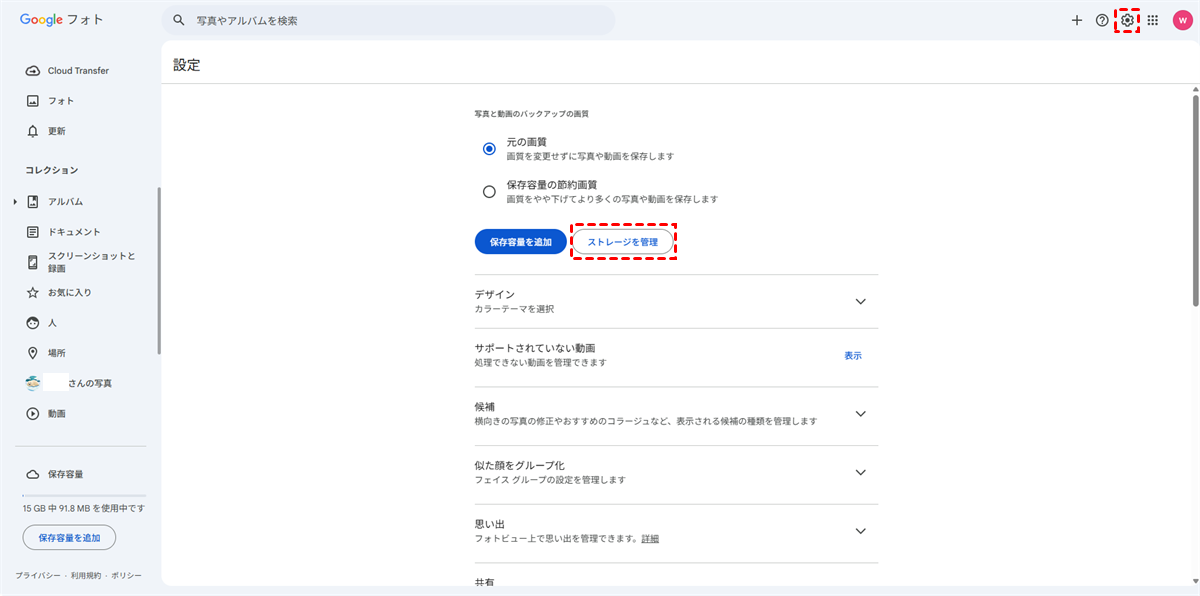 ステップ 3:設定ページで「ストレージを管理」を選択します。