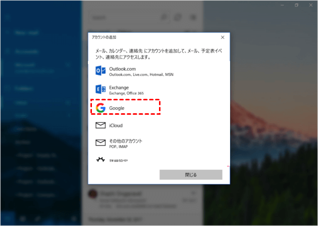 2. 「アカウントの追加」ウィンドウでGoogleをクリックします。