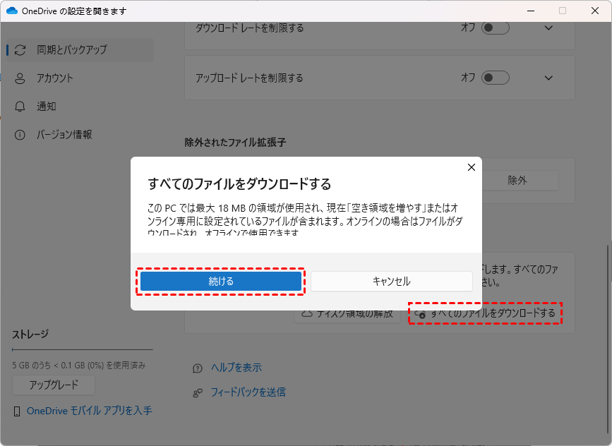 ステップ 4:「すべてのファイルをダウンロード」>「続ける」をクリックし、写真を含むすべてのOneDriveファイルをダウンロードします。