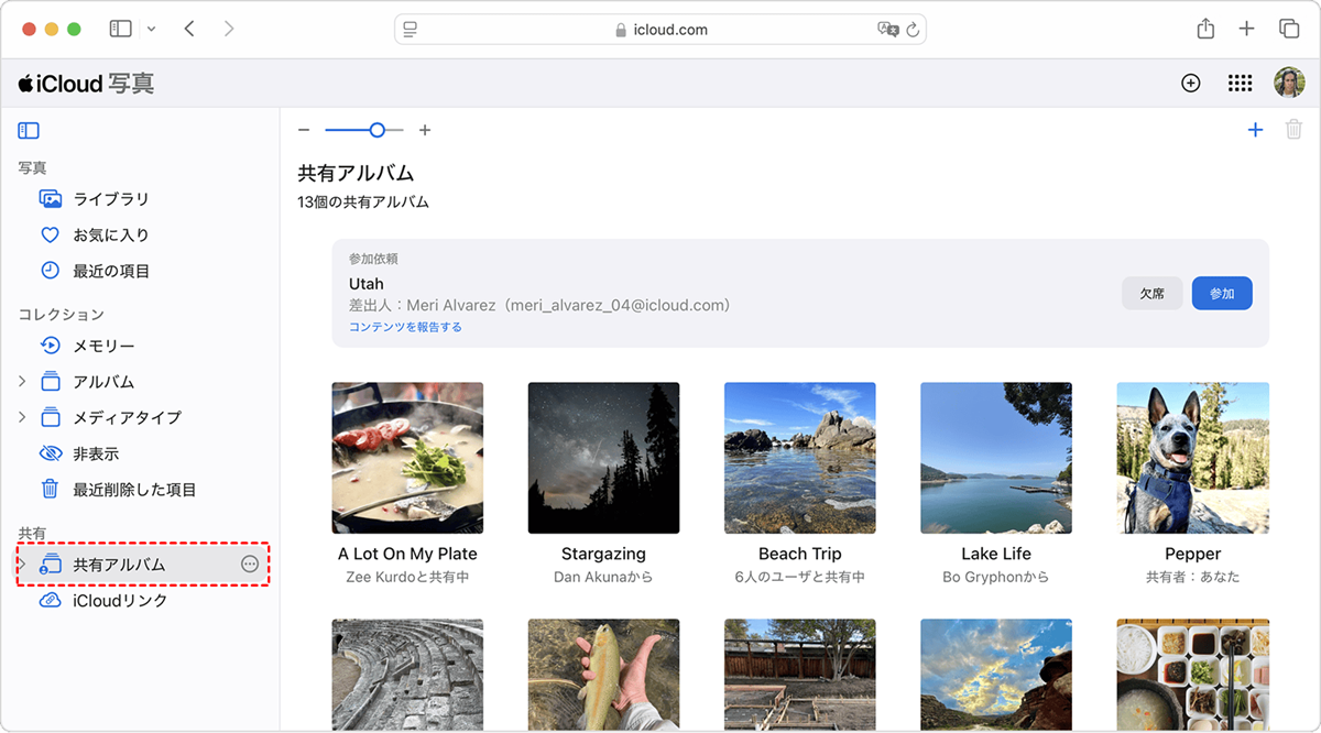 シチュエーション2:iCloud共有アルバムの写真をPCにダウンロード