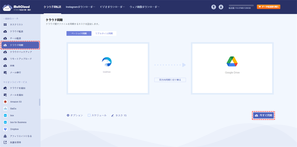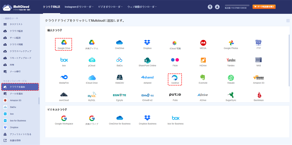 以下では、MultCloudを使用してIcedriveとGoogleドライブを同期する方法をご紹介します: