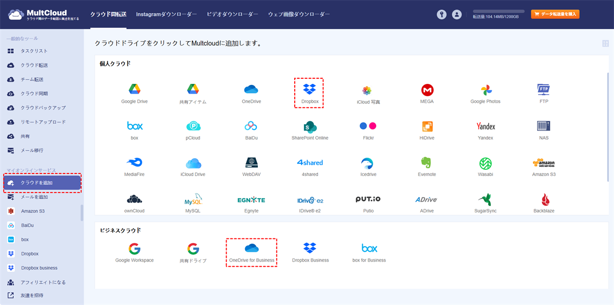 方法1:MultCloudでDropboxからOneDrive for Businessに移行