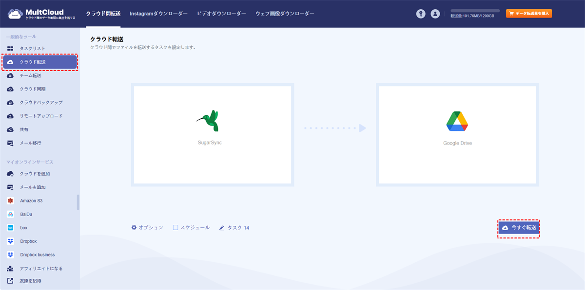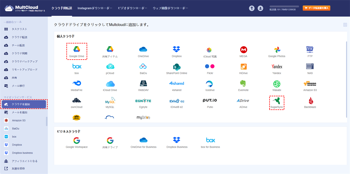 「最もおすすめ」MultCloudでSugarSyncからGoogleドライブへのファイル転送方法