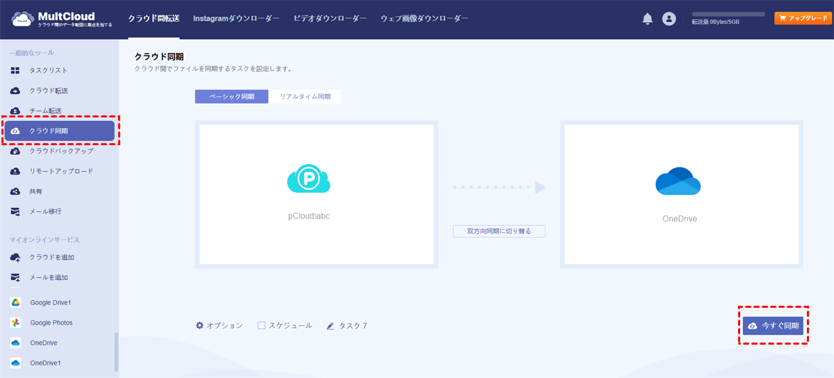 - 双方向同期に切り替る: 2つのクラウド間でファイルを双方向に同期します。