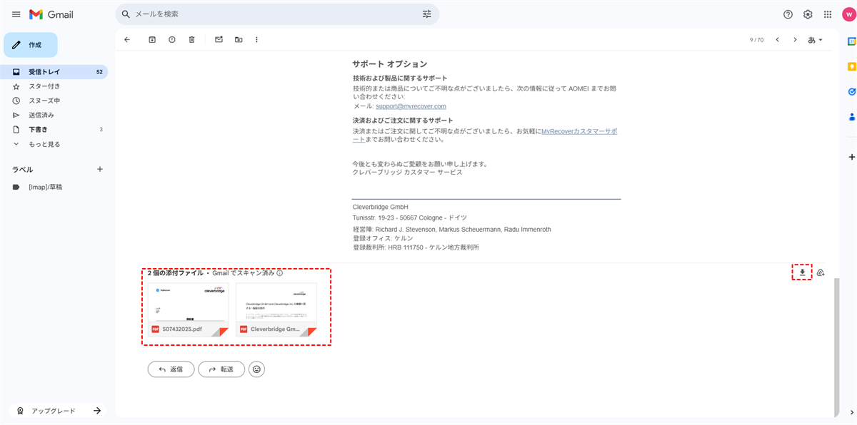 ステップ 1:Gmailで対象メールを開き、添付ファイルをダウンロードします。
