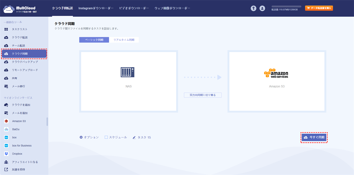 では、MultCloudを使って、SynologyのデータとS3を直接かつ簡単に同期させる方法について詳しく見ていきましょう。