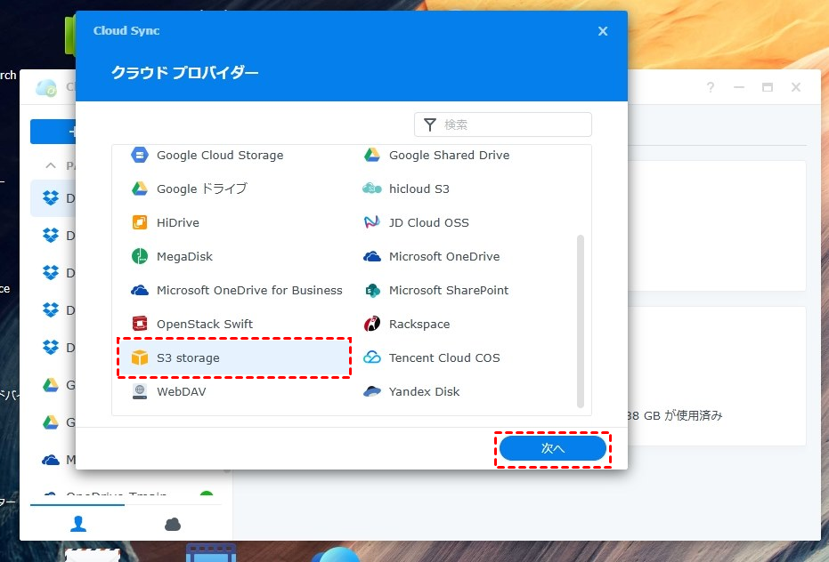 Synology NASには、Synology NASからS3、Googleドライブ、OneDriveなどの他のクラウドドライブへ、あるいはその逆方向にデータを同期できる「Synology Cloud Sync」という組み込みアプリが用意されています。Synology NASとAmazon S3のファイルを同期したい場合は、このサービスを直接、簡単に使用できます。