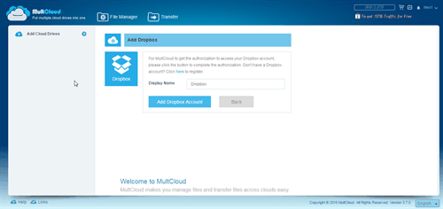 上記の方法は、DropboxからAmazon Cloud Driveへの転送を成功させることができますが、不安定なネットワーク速度でダウンロードとアップロードのプロセスを待つために、多くの時間とエネルギーを必要とします。しかし、ダウンロードとアップロードをせずに、クラウドストレージサービス間で効率的にファイルを転送する別の簡単な方法を紹介します。必要なのは、MultCloudのアカウントを作成し、クラウドを安全に追加することだけです。