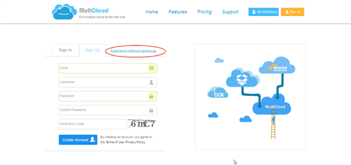 ステップ1:MultCloudアカウントをサインアップし、そのインターフェイスにログインします。