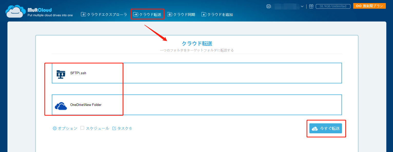 MultCloudを使ってファイルをたやすくFTPからOneDriveに転送でき、確実に時間と手間を省きます。「クラウド転送」機能以外、MultCloudには「クラウド同期」、「共有」と「リモートアップロード」機能を備えています。複数のクラウドを同期するなら、「クラウド同期」機能を使ってみましょう。