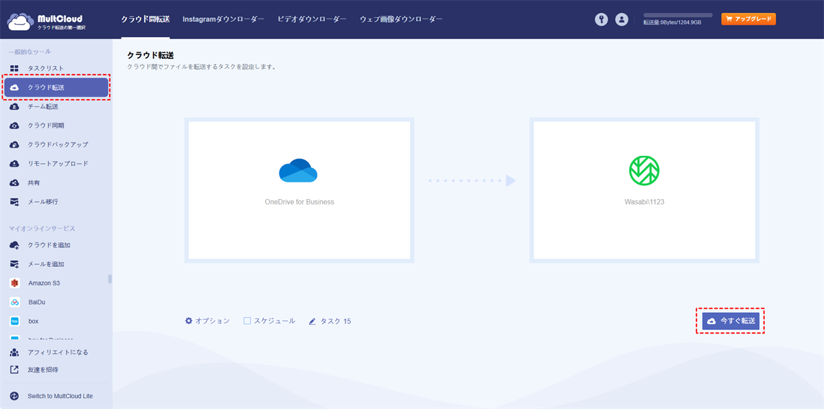 方法1. クラウド転送を介してOneDrive for BusinessからWasabiに移行する