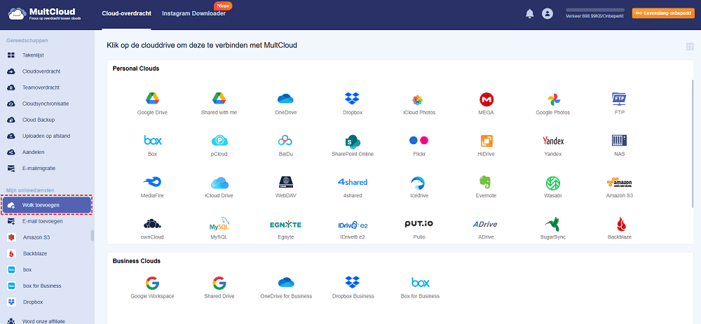 Verplaats, synchroniseer en maak back-ups van gegevens tussen meer dan 30 cloudservices met MultCloud