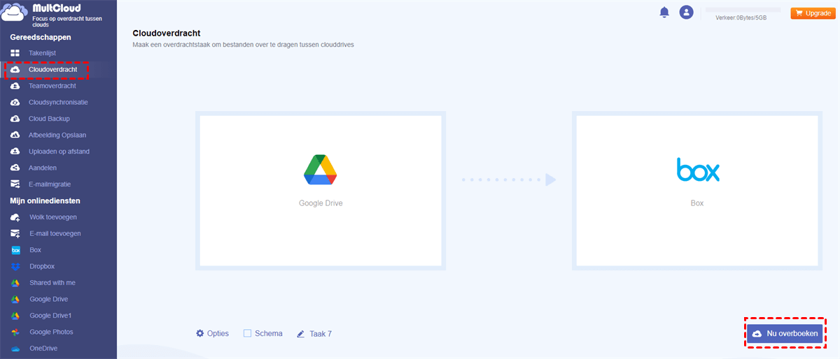 Stap 3. Migratie van Google Drive naar Box met "Cloudoverdracht"
