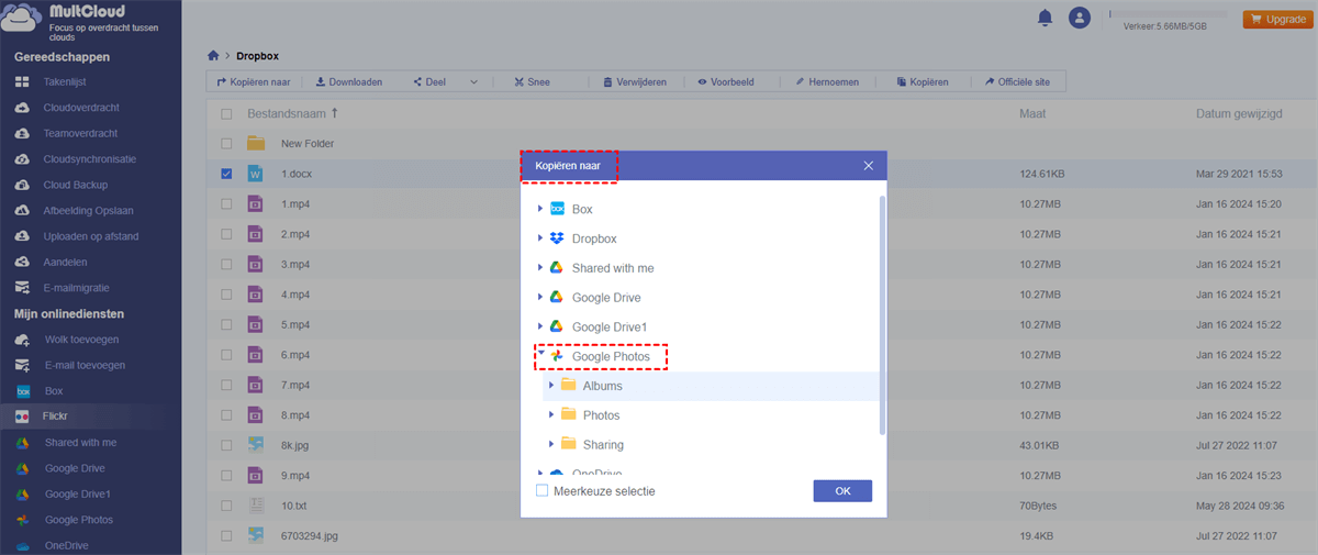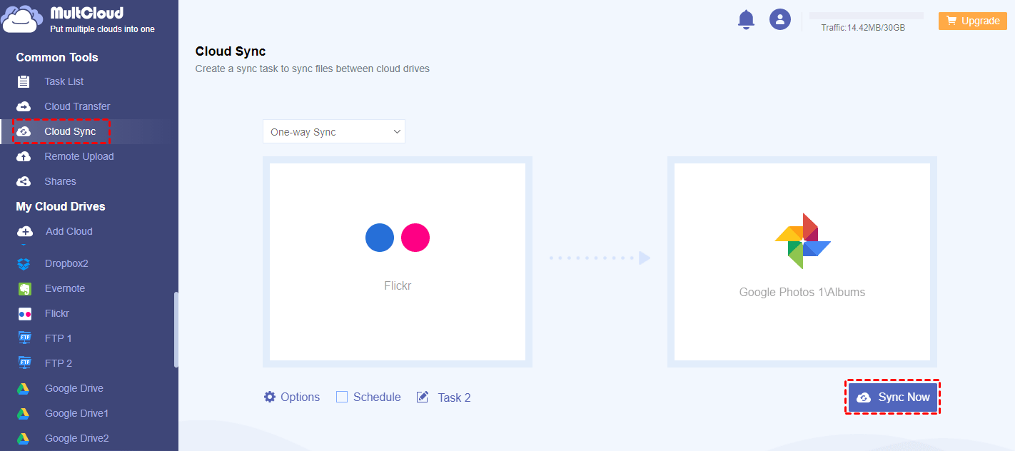 Met MultCloud kunt u indien nodig eenvoudig foto’s van Google Photos naar Flickr verplaatsen, wissel eenvoudig de bron en bestemming om te migreren.