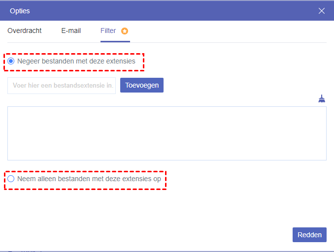 - Om alleen specifieke bestanden met een bepaalde extensie over te zetten, kunt u naar "Opties" -> "Filter" gaan om te kiezen welk soort bestanden u wilt migreren of overslaan tijdens de Google Drive-overdracht. Ontgrendel alstublieft om te genieten van alle geavanceerde functies, evenals snellere overdrachtssnelheid (tot 10 threads in plaats van 2).