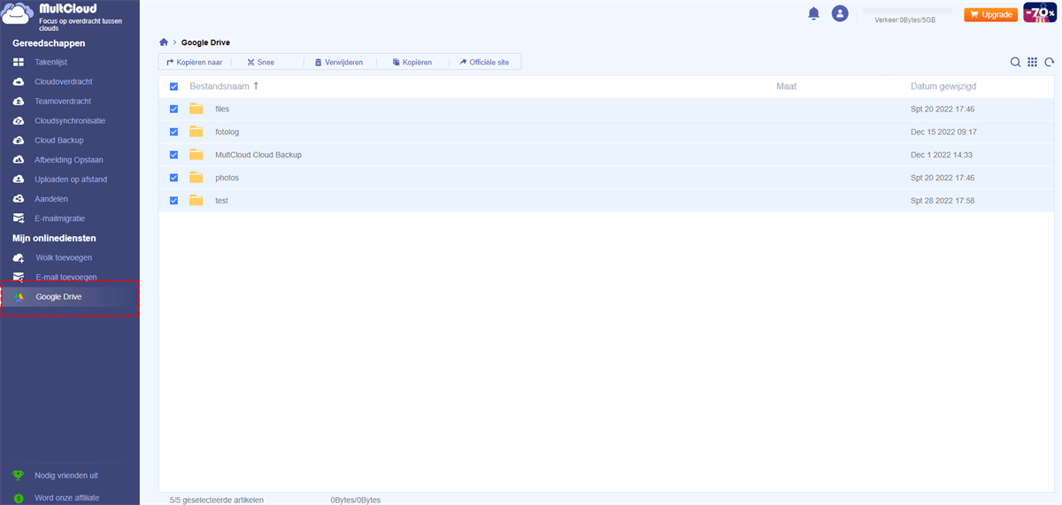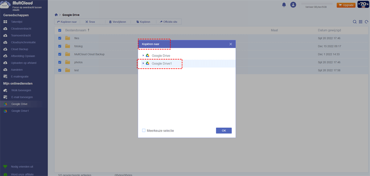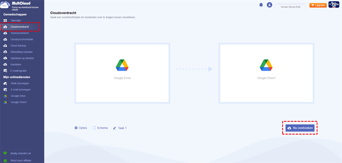 Als u een Google Drive-map naar een ander account wilt kopiëren, kunt u volledig gebruik maken van "Cloud Overdracht", deze functie is meer geschikt als u alles van de ene Google Drive naar de andere wilt overzetten. Ook het overzetten van bepaalde mappen of bestanden is mogelijk.