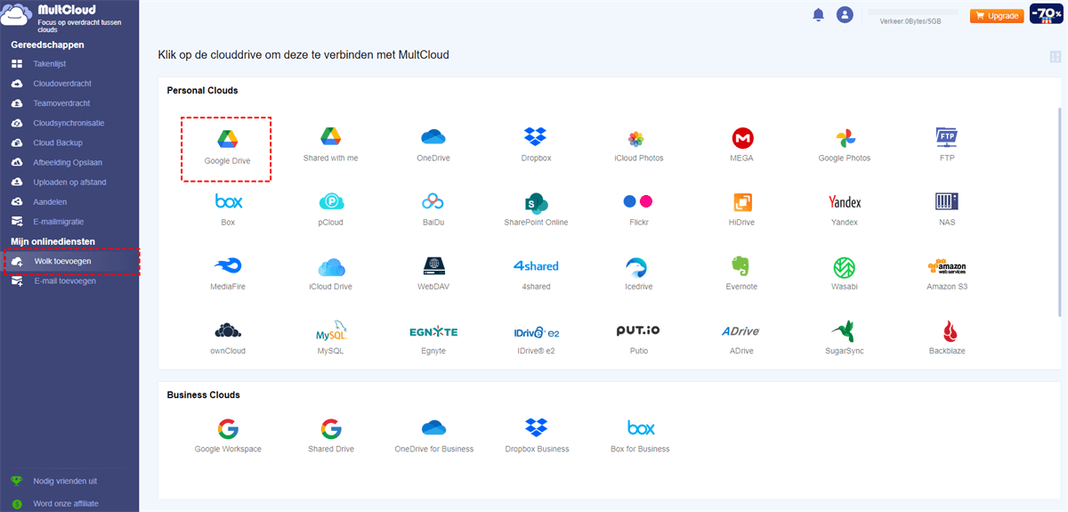 MultCloud ondersteunt clouds