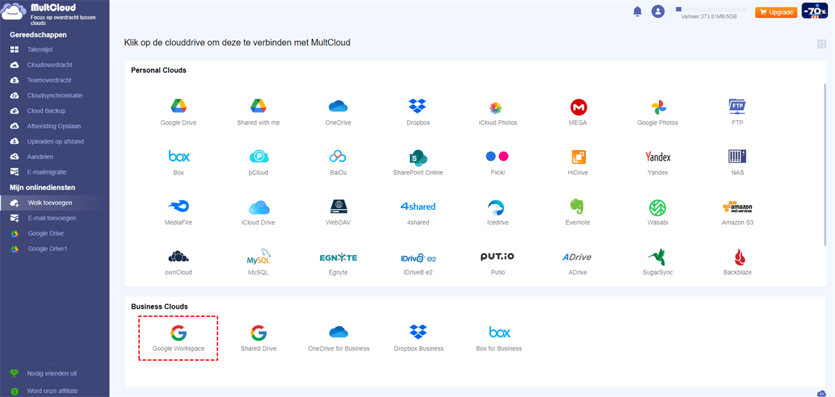 1. Voeg uw Google Workspace-accounts na het inloggen toe aan uw MultCloud-account.