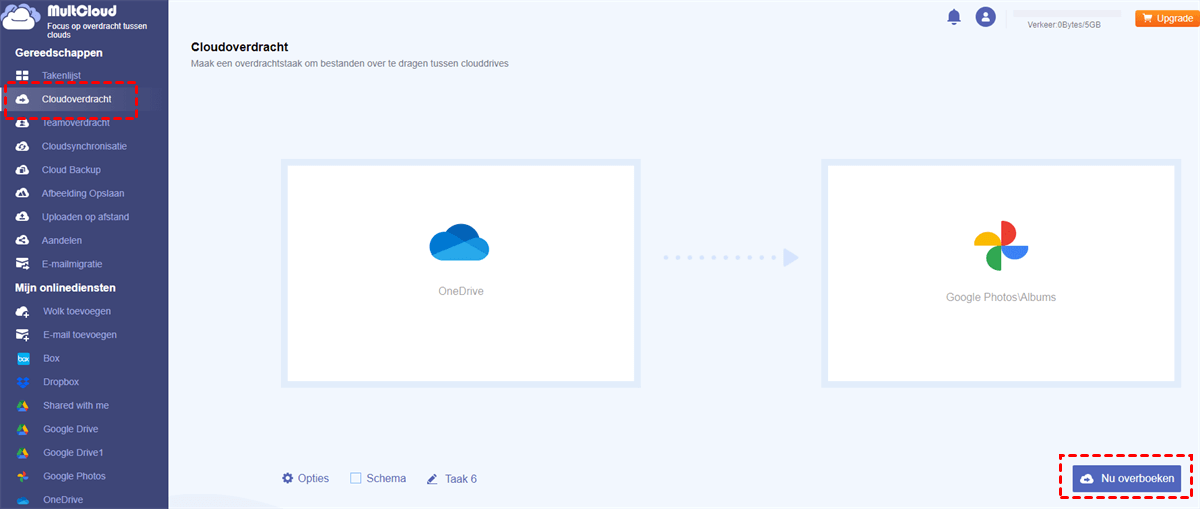 Als je foto's gaat overzetten van OneDrive naar Google Photos, kun je gewoon "Cloudoverdracht" gebruiken om de taak te voltooien. De gedetailleerde stappen zijn als volgt.